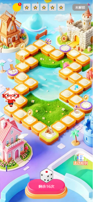 金融消保知识普及:将格子与消保答题、知识点科普绑定,用户掷骰子前进,答对题目获得奖励,实现知识科普的趣味化传播。品牌营销活动:植入